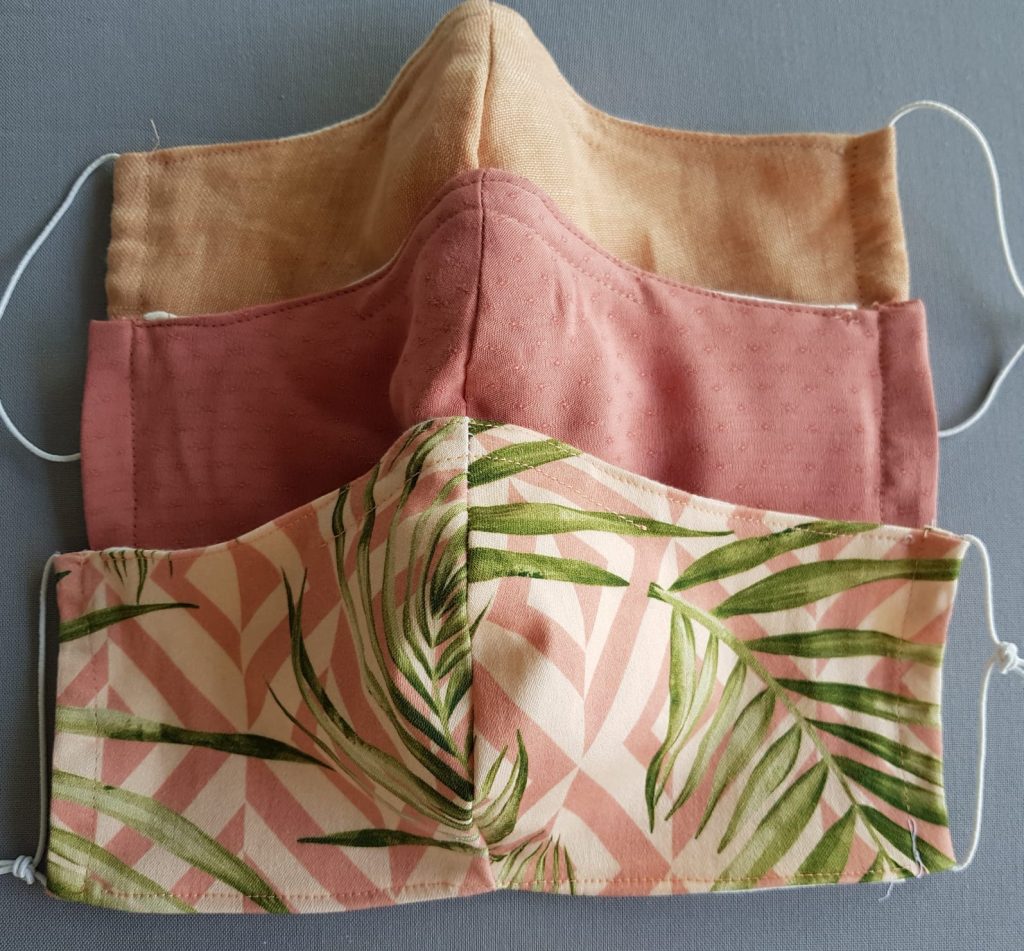 Ein Blusenstoff wäre zu dünn für eine zweilagige Maske, aber als „Zierstoff“ ist er eine gute Lösung. Lassen Sie sich einfach eine zweilagige „normale“ Maske nähen und verwenden Sie den Blusenstoff als dritte Lage. (Blusenstoff vor der Verarbeitung bei 60° C waschen :))