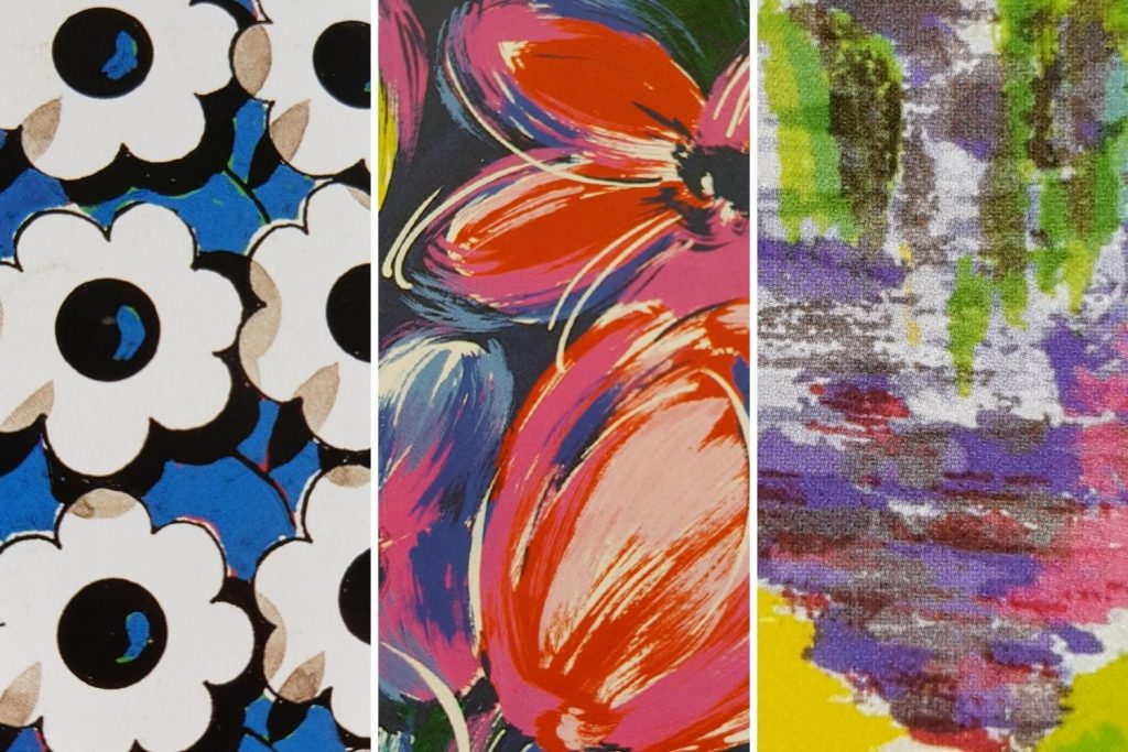- Gleiche Muster in unterschiedlicher Größe (große mit kleine Blumen) oder unterschiedlichen Materialien (fester Stoff mit Seide)